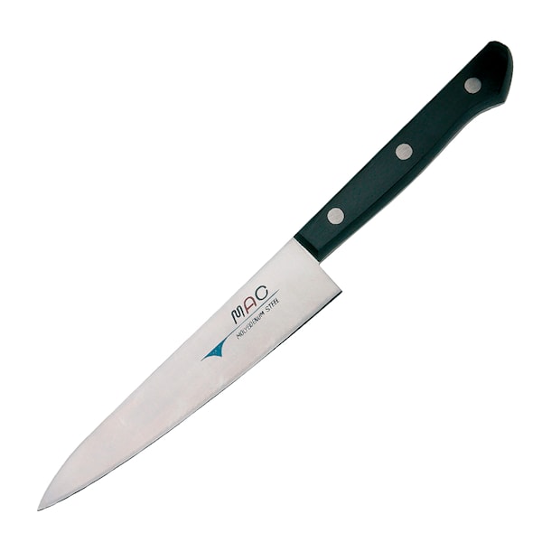 Grönsakskniv från Mac som är perfekt att använda för att skala och skära frukt och grönsaker. Men en bladlängd på 13,5 cm gör det att du kan skära både små och större grönsaker utan att känna att kniven är för liten eller för klumpig. Det tunna knivbladet bidrar till knivens låga vikt och bladet är avsmalnande hela vägen från ryggen till eggen vilket ger ett V-format blad som glider lätt genom snittet.