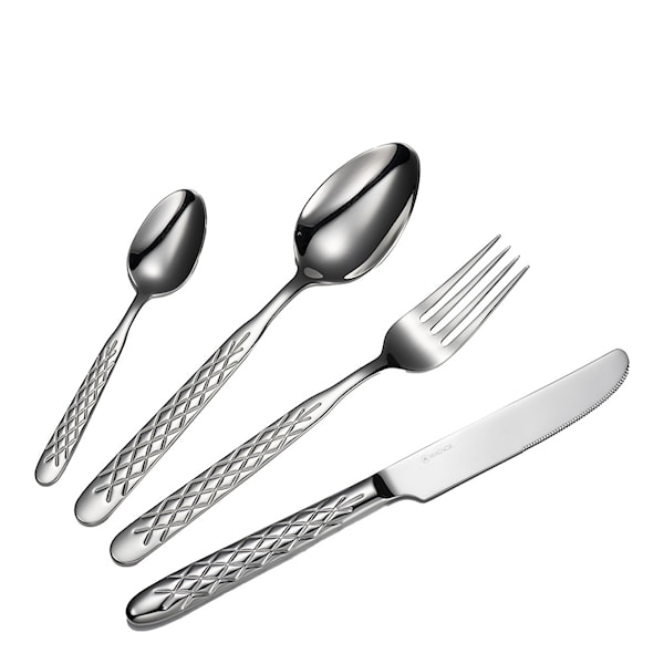 August bestickset 16 delar stål från Magnor är ett elegant och tidlöst tillskott till din matuppsättning. Inspirerat av de klassiska slipmönstren från Magnors arkiv och designat av Teresa Bergerud, in-house designer med över 20 års erfarenhet, erbjuder detta set en sofistikerad och hållbar lösning för alla måltider. Besticket är tillverkat av 18/10 rostfritt stål och har de karakteristiska kors-slipningarna som även pryder de berömda Albaglasen. Detta ger besticket ett unikt och sammanhängande uttryck som passar utmärkt med andra produkter från Magnor.
