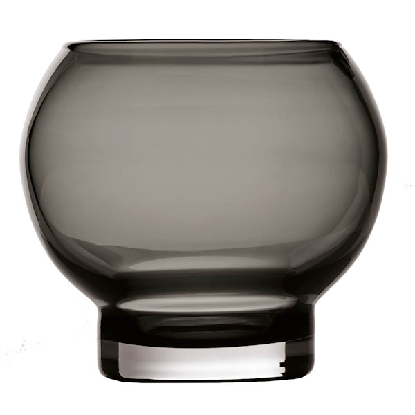 Finns i tre funktionella storlekar i kolgrått glas: värmeljus/vas H 8,5 cm, lykta/vas H 16,5 cm och lykta/vas H 23 cm.