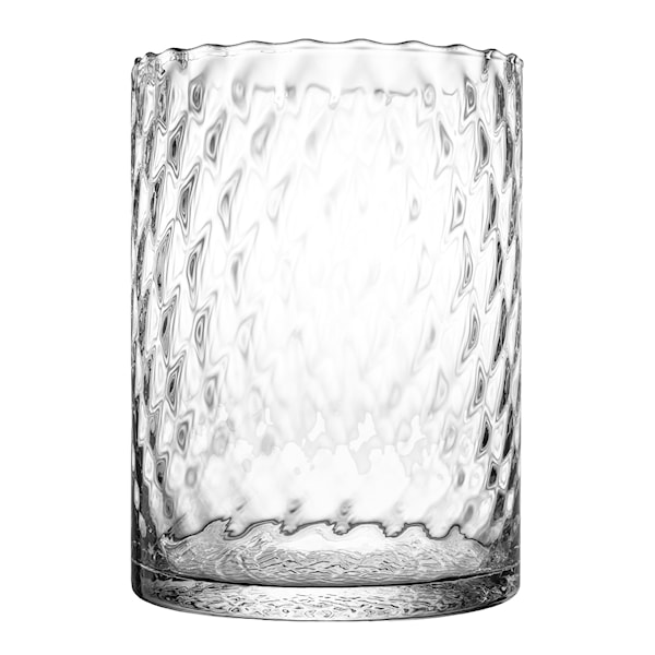 I klart glas framhävs både mönstret och materialets rena uttryck, vilket gör den mångsidig i användning. Som lykta sprider den ett mjukt och behagligt ljus, och som vas blir den ett elegant inslag med säsongens blommor.