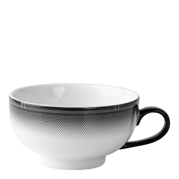 Mugg med öra från serien Voyage och norska Magnor - ger din dukning ett spännande uttryck. Porslinsserien går i svart-vitt och är en härlig blandning av art deco, lyxig fransk bistro och modern inredning. Olika exotiska djur finns som motiv, bland annat en flamingo och en jaguar. I botten på denna kopp, när kaffet eller teet är urdrucket syns en palm. Även frukter finns som dekor i denna porslinsserie, som till exempel en ananas. Serien är designad av den duktiga stylisten Storm och finns i åtta delar. Alla delar har Storms karaktäristiska signatur på undersidan.