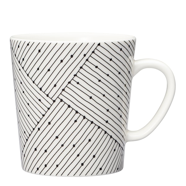 Mugg från Arabia, rymmer 30 cl och är tillverkad i vitroporslin. Ingår i serien Mainio Sarastus. Passar såväl till vardag som fest och är lätt att kombinera med andra serviser. Alla delar tål både diskmaskin, mikrovågsugn och ugn.