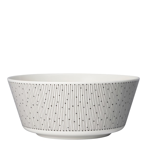 Skål från Arabia och serien Mainio Sarastus, Skålen har en diameter på 23 cm och är dekorerad med ett grafiskt svartvitt mönster. Skålen med sitt fina mönster blir ett vackert inslag till dukningen och passar perfekt att servera sallad, pasta eller kanske potatis i. Passar såväl till vardag som fest och är lätt att kombinera med andra serviser. Alla delar tål både diskmaskin, mikrovågsugn och ugn.