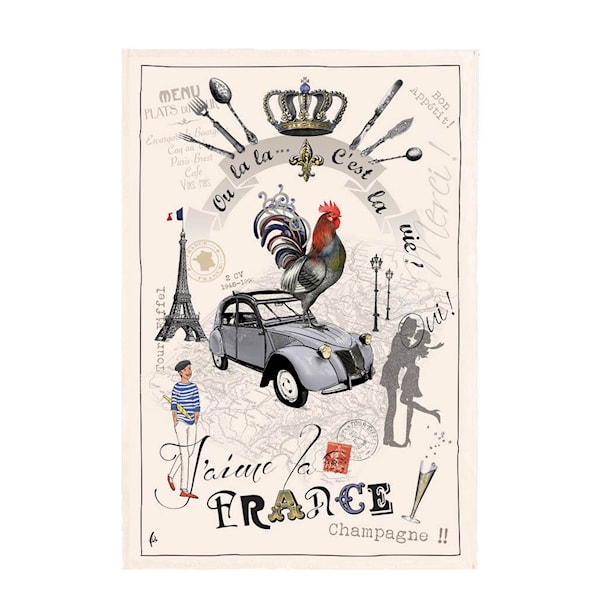 France Panorama kökshandduk från Maison Vivaraise (48x72 cm) är en hyllning till fransk livsstil och gastronomi.