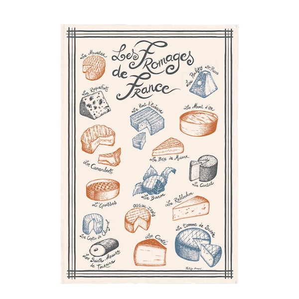 Ge köket en stilfull touch med kökshandduken Fromage de France från Maison Vivaraise. Den är prydd med lekfulla motiv av franska ostar, vilket gör den lika dekorativ som funktionell. Handduken är vävd i 100% bomull och tillverkad i Frankrike med fokus på kvalitet och hållbarhet.