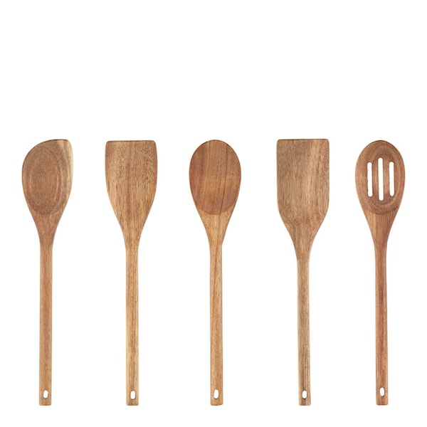 Fem köksredskap i harmoniskt akaciaträ