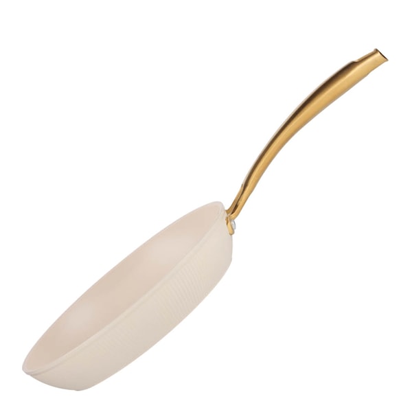 Pannans räfflade utsida och det guldfärgade handtaget ger ett lyxigt uttryck i köket. Den är kompatibel med alla typer av spisar, inklusive induktion. För bästa hållbarhet rekommenderas handdisk.