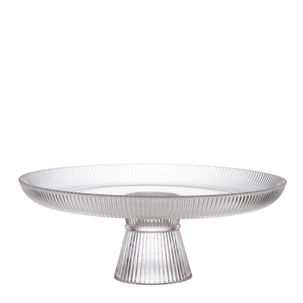Detta uppläggningsfat från Maku Kitchen Life kombinerar praktisk funktion med estetisk finess. Den räfflade glaskonstruktionen och upphöjda foten ger en tidlös elegans till såväl vardagliga måltider som festdukningar.