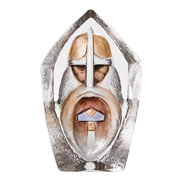 Denna vackra skulptur från Målerås är ett gjutet kristallblock i serien Nordic Icons med ett sandblästrat och målat motiv av åskguden Tor. Skulpturen är målad med organiska färger, och den är handgjord i Målerås med signatur placerad i botten.