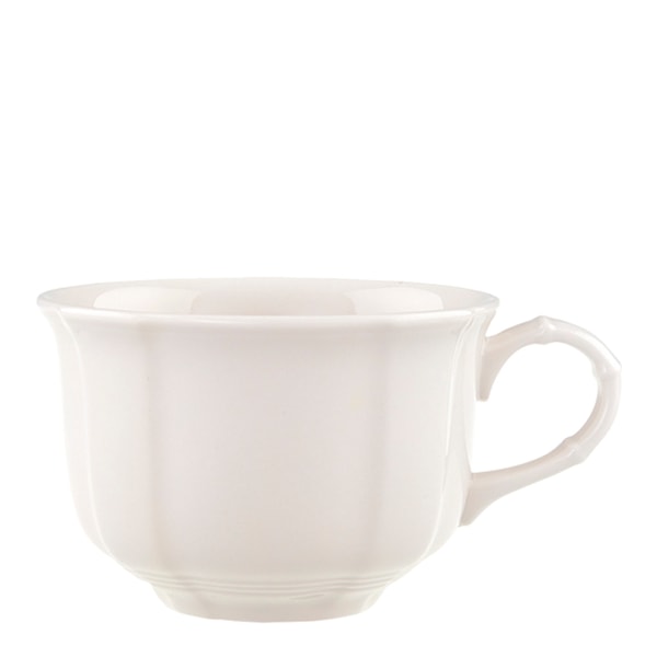 Denna tekopp är ett måste för varje fikastund. Kanten böjer sig elegant utåt för en mer bekväm användning. Tidlös elegans med en stilren formgivning. Manoir har försiktiga men samtidigt spännande former tillsammans med små detaljer. Varje måltid känns som en storartad bjudning med denna vackra serie. Kombineras fint inom serien, men även med Villeroy & Bochs övriga mönster.