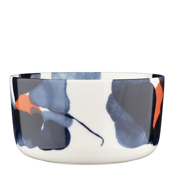 Oiva Valssi skål från Marimekko är en stilren kombination av funktion och estetik. Med sitt färgstarka mönster i vitt, blått och orange tillför denna skål en fräsch och lekfull detalj till dukningen. Den rymmer 50 cl och är tillverkad av slitstarkt stengods som tål diskmaskin, ugn, mikrovågsugn och frys – perfekt för daglig användning.