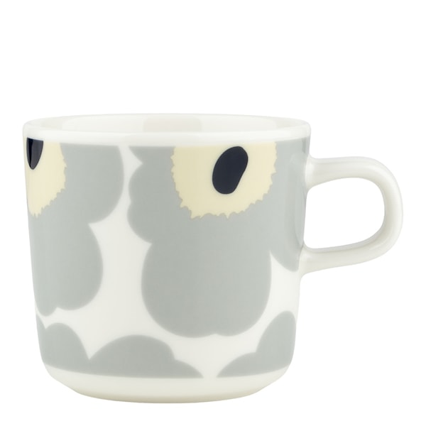 Koppen Oiva Unikko på 20 cl från Marimekko är tillverkad av vitt stengods och är mycket mångsidig då den tål diskmaskin, ugn, mikrovågsugn och frys.