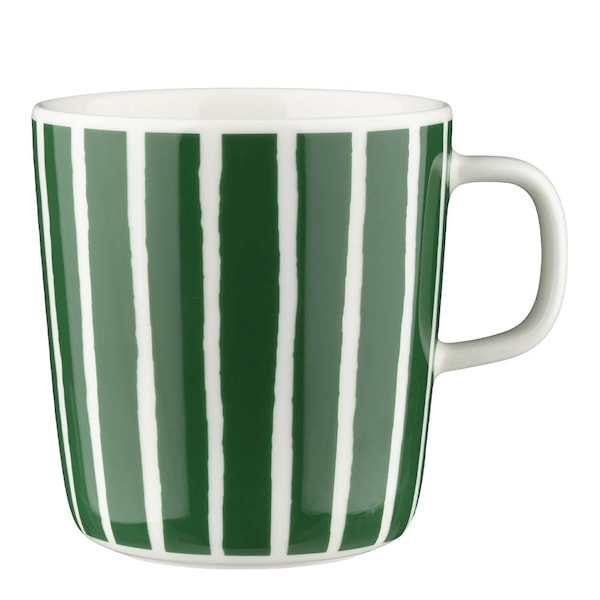 Piccolo-muggen på 40 cl från Marimekko kombinerar funktionalitet med tidlös design. Denna Oiva-mugg, tillverkad av vitt stengods, tål diskmaskin, ugn, mikrovågsugn och frys, vilket gör den både praktisk och hållbar för daglig användning. Innan användning rekommenderas det att ta bort klistermärket på botten av muggen, eftersom det innehåller en liten mängd metall.