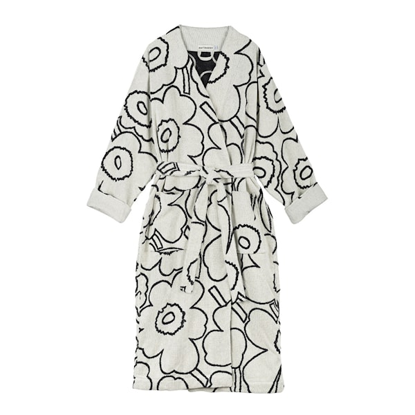 Piirto Unikko morgonrock från Marimekko kombinerar komfort med ikonisk design. Tillverkad av mjuk bomullsfrotté ger den en behaglig och absorberande känsla, perfekt efter duschen eller en avkopplande morgon. Modellen har långa, löst sittande ärmar, fickor i sidosömmarna och ett avtagbart bälte för en justerbar passform. Marimekko-logotypen är diskret placerad i nacken som en elegant detalj.