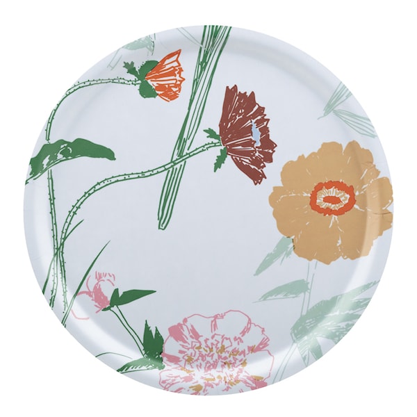 Brickan är dekorerad med det livfulla Puutarhakutsut-mönstret, en färgstark komposition inspirerad av frodiga trädgårdar och blomstrande växter. Den slitstarka ytan gör det perfekt för servering av mat och dryck, vare sig det gäller frukost, smårätter eller snacks.