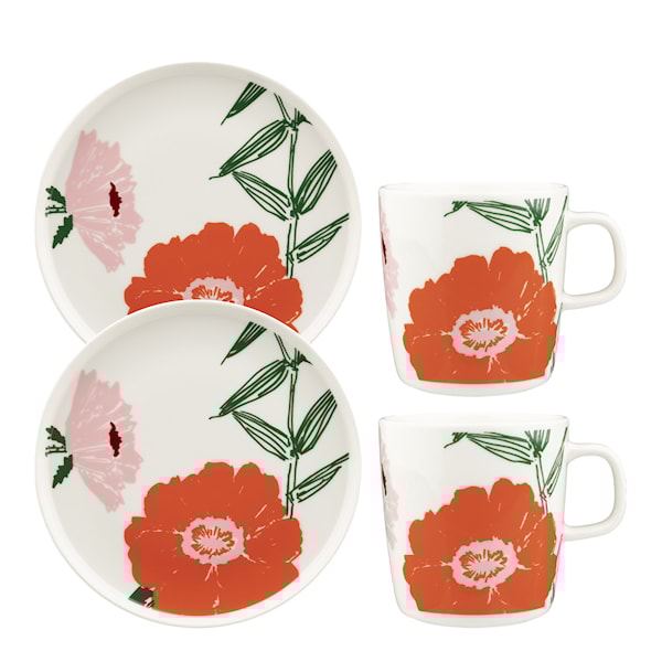 Setet levereras i en elegant Marimekko-logolåda, vilket gör det till en perfekt gåva för designälskare eller ett stilfullt tillskott till den egna servissamlingen.
