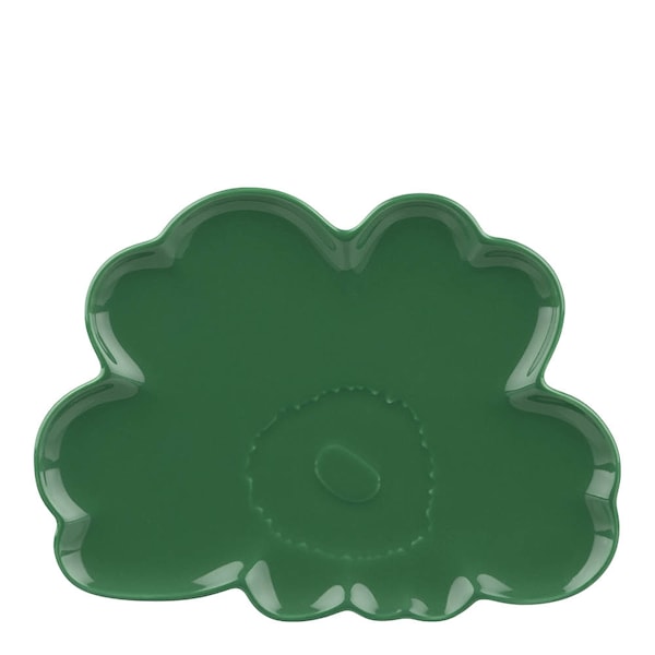 Marimekko Unikko assiett 19 cm i grön blomform kombinerar tidlös design med funktionalitet i ett vitt stengods som tål både daglig användning och speciella tillfällen.