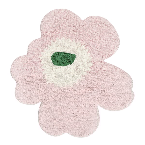 Unikko badrumsmatta från Marimekko är ett lekfullt och dekorativt inslag i badrummet. Den tuftade bomullsytan ger en mjuk och behaglig känsla under fötterna, medan den handklippta blomformen skapar ett unikt visuellt uttryck. Med en diameter på 73 cm är den både funktionell och estetiskt tilltalande. Varje matta har små variationer i formen, vilket gör den till ett särpräglat designobjekt. Den halkfria baksidan ser till att mattan ligger stadigt på golvet.