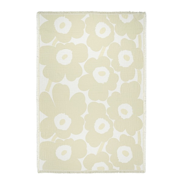 Unikko-pläden från Marimekko är ett stilrent och funktionellt tillskott till hemmet, perfekt för att skapa en ombonad atmosfär och härliga mysstunder. Filten mäter 150x220 cm och är tillverkad av mjuk bomull med jacquardstickning, vilket ger en behaglig textur och slitstark kvalitet. De korta fransarna på alla sidor tillför en elegant detalj, medan det vändbara mönstret med omvända färger på baksidan ger möjligheter till variation i inredningen.