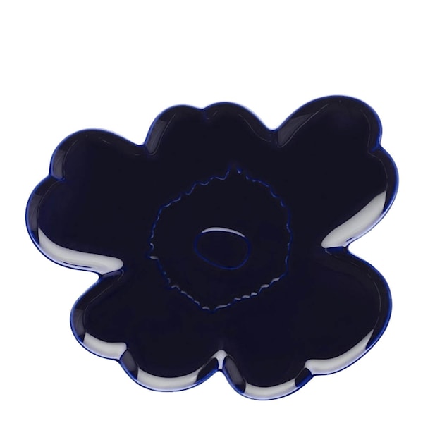 Marimekko Unikko serveringsfat 32x32 cm i blomformad koboltblå är ett dekorativt serveringsfat som kombinerar ikonisk design med funktion. Fatet är format som Unikko-blomman, skapad av Maija Isola 1964, och är en hyllning till mönstrets 60-årsjubileum som idag är en självklar symbol för Marimekkos designarv.
