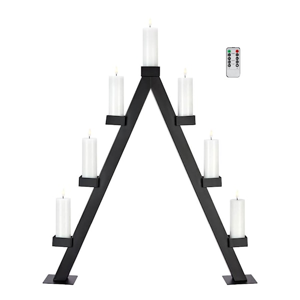 Markslöjd Arbor ljusstake i svart metall kombinerar modern design med praktiska funktioner. Den 85 cm höga ljusstaken är utrustad med 7 fjärrstyrda LED-blockljus med naturtrogen vaxlook som skapar en varm och stämningsfull atmosfär.