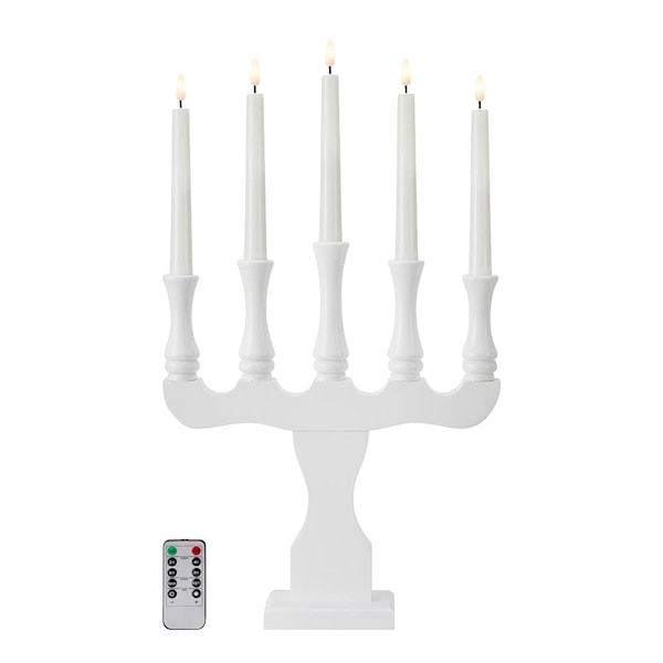 Upptäck Rydboholm adventsstake från Markslöjd – en elegant ljusstake i vitmålat trä med 5 LED-ljus i naturtrogen vaxlook. Den kombinerar klassisk design med modern teknik och skapar en varm och stämningsfull atmosfär.