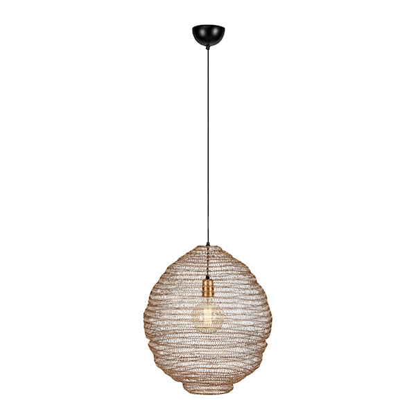 Tazza taklampa 50 cm från Markslöjd är en stilfull lampa tillverkad i metall, designad med en organisk form som påminner om en bikupa. Den rustika men lekfulla formen ger lampan ett skulpturalt uttryck och tillför ett dynamiskt element till rummet.
