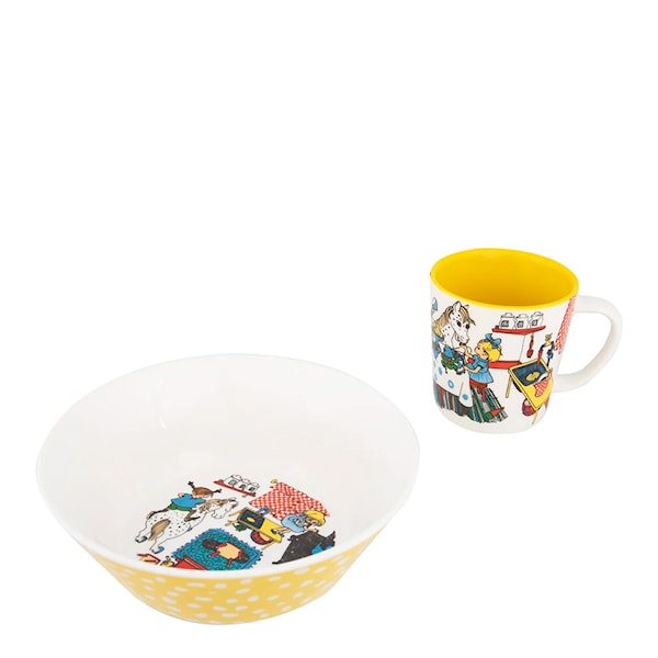 Utforska Pippi Långstrump världen vid varje måltid med detta färgglada barnservis från Martinex! Med fantasifulla motiv som livar upp dukningen och en fin förpackning är detta set inte bara praktiskt utan även en fröjd för ögat. Serviset består av en mugg (20 cl) och en skål (5 dl) i slitstarkt porslin som tål både ugn, mikrovågsugn och diskmaskin. Ge ditt barn en rolig och färgglad måltidsupplevelse varje dag med detta underbara Pippi Långstrump servis!