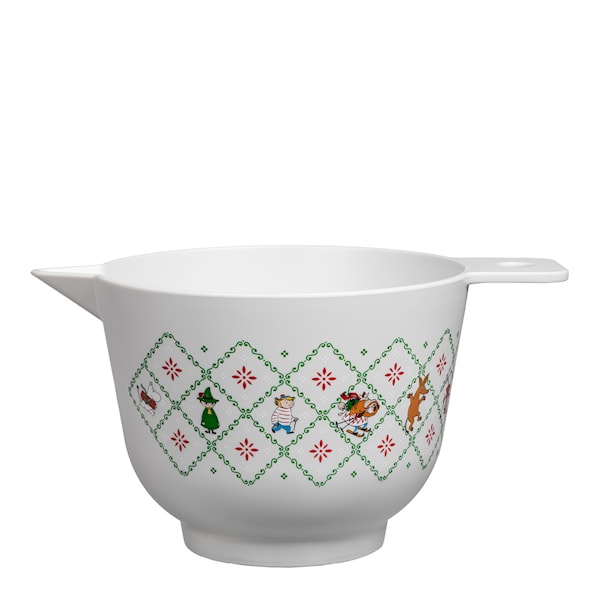 Upptäck den magiska julestämningen med Jublande Bakskål 1,5 L! Denna charmiga bakskål med Muminmotiv är både praktisk och festlig. Med sin hällpip och handtag är den enkel att använda, och dess generösa kapacitet på 1,5 liter gör den perfekt för alla typer av bakning.