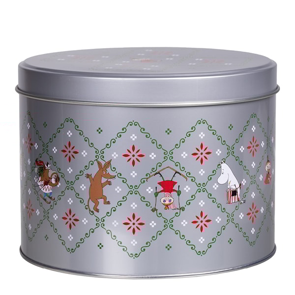 Jubla med denna charmiga plåtburk med ett festligt Muminmotiv från Moomin by Martinex! Perfekt för förvaring av godsaker eller som en fin present till en vän. Handdisk rekommenderas för att bevara dess skönhet. Lägg i dina godaste kakor och sprid glädje med denna färgglada burk!