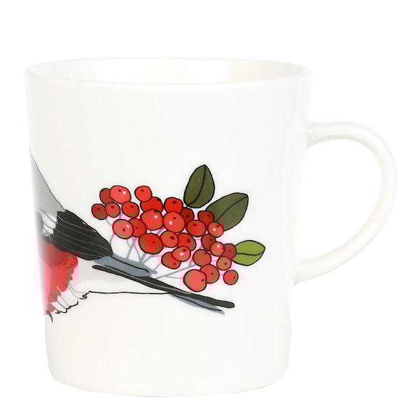 Domherre Mugg 30 cl. Hör du kvittret när du tar en klunk av den varma drycken? Servera i en stor mugg prydd med en vacker domherre. Det färggranna motivet mot den vita grunden livar upp dukningen vid både vardagsbjudningar och högtider.