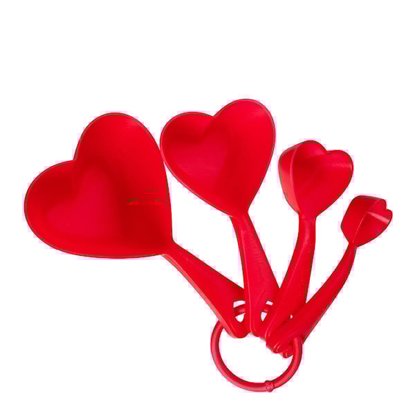 Martinex måttsats 4 delar Hjärtan är ett köksset som förenar funktion och form på bästa sätt. Med sin dekorativa hjärtform i rött och fyra tydliga storlekar – tesked, matsked, 0,5 dl och 1 dl – är de både praktiska och fina att ha framme.