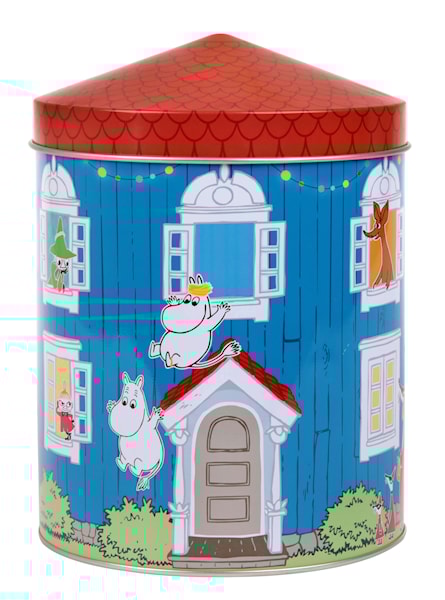 Plåtburk från Martinex i Muminhusets färg och form, med Mumintrollet och hans vänner och familj på. Burkens lock är format som taket på Muminhuset. Förvara precis vad du vill på ett riktigt färgglatt sätt med denna plåtburk. Handdisk rekommenderas och noggrann torkning för ett optimalt resultat.