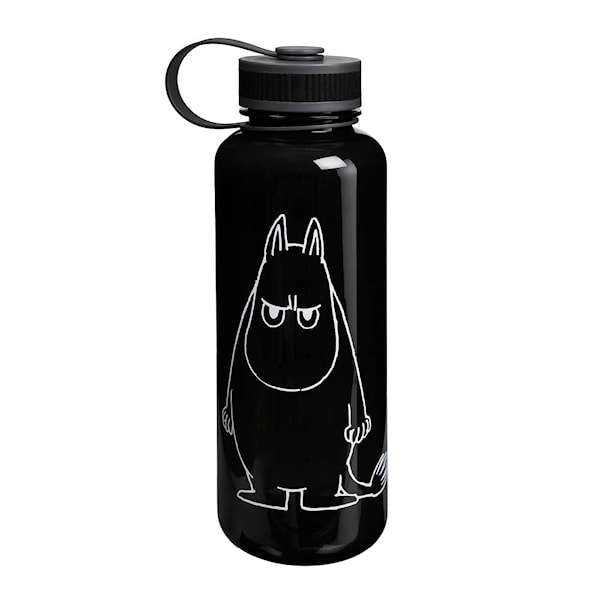 Denna svarta Mumin-flaska på 1 liter kombinerar stilren design med humoristisk charm. Med sitt roliga tryck av ett argt Mumintroll blir den en rolig följeslagare i vardagen. Den praktiska skalan på baksidan gör det enkelt att hålla koll på vätskeintaget.