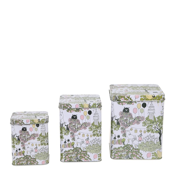 Mumin fyrkantig burk Trädgård från Martinex är en charmig och praktisk uppsättning burkar med motiv från den älskade Mumindalen. Dessa tre burkar i olika storlekar har gångjärnslock, vilket gör dem perfekta för förvaring av allt från mat till småsaker. Varje burk ger en tidlös och lekfull touch till köket eller hemmet. Handdisk och noggrann torkning rekommenderas för att bevara burkarnas fina motiv och funktionalitet över tid.