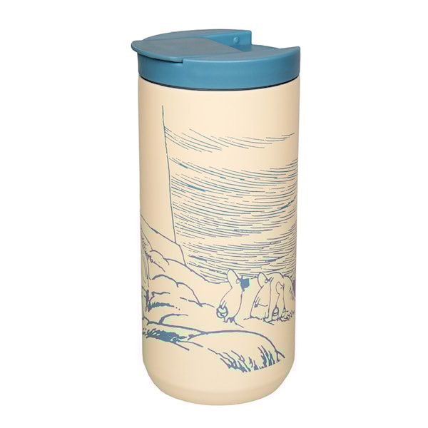 Mumin Horisont Termosmugg 45 cl från Martinex är designad med ett motiv i en vacker nyans, som är inspirerat av Tove Janssons ursprungliga Muminböcker. Med en volymkapacitet på 45 cl har denna termosmugg gott om plats för din favoritdryck. Termosmuggen är utrustad med en silikonring i botten för att ge ett bra fäste och har också ett tättslutande skruvlock