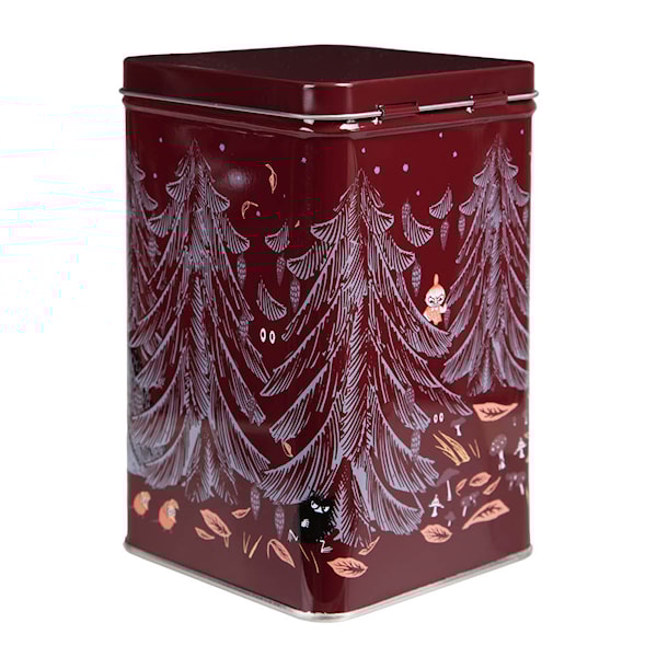 Denna fyrkantiga Mumin-kaffeburk på 10x10 cm med en höjd på 16 cm är både en praktisk och dekorativ förvaringslösning. Det stämningsfulla motivet ”Urskog” visar Mumintrollet och hans vänner som njuter av en lugn höstdag i skogen, vilket ger burken en harmonisk och nostalgisk känsla. Den kvadratiska formen gör den perfekt för att förvara de flesta kvadratformade kaffepaketen och håller innehållet fräscht längre.