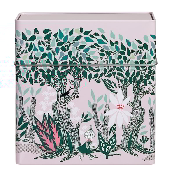 Mumin kaffefilterburk Vårkastanj från Martinex är en både funktionell och charmig lösning för att förvara kaffefilter. Tillverkad i plåt och dekorerad med ett lekfullt muminmotiv i rosa och grönt, fångar burken en lugn försommardag där muminfigurerna vandrar genom en blomstrande kastanjeskog. Med sitt praktiska lock håller burken kaffefiltren torra och lättillgängliga. För att bevara burkens vackra design rekommenderas handdisk och noggrann torkning efter användning. Perfekt för att tillföra en touch av Mumin-magi till ditt kök.