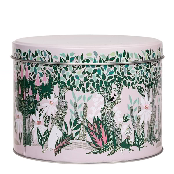 Stilfull plåtburk med färgglatt muminmotiv