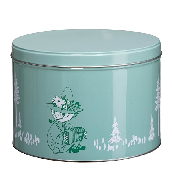 Martinex Mumin stapelbar plåtburk 1,5 L Snusmumriken grön är en genomarbetad förvaringsburk som kombinerar funktion och ett tydligt grafiskt uttryck. Det stilrena Snusmumriken-mönstret ger burken en distinkt karaktär.