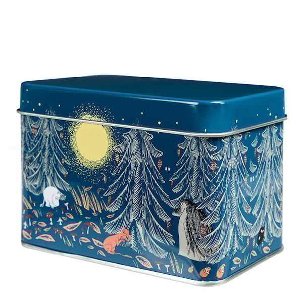 Denna härliga Mumin-teburk är en charmig förvaringslösning för teälskare. Motivet fångar en stillsam höstdag i skogen där Mumintrollet och hans vänner kopplar av, vilket gör burken till en nostalgisk och dekorativ inredningsdetalj.
