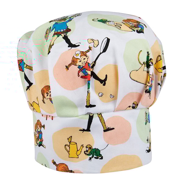 Denna härliga Pippi Långstrump kockmössa för barn är ett måste för alla små bagare där hemma. Med sina färgglada motiv och justerbara kardborrestängning baktill är den en perfekt passform för de små. Tillverkad i 100% bomull och med en stadig kant är denna kockmössa både praktisk och rolig att använda. Kanten på 6,5 cm är stadig så mössan sitter bra och omkretsen på ca 50 cm kan enkelt justeras med kardborreband. Ge ditt barn möjligheten att utforska världen av bakning med denna söta kockmössa!