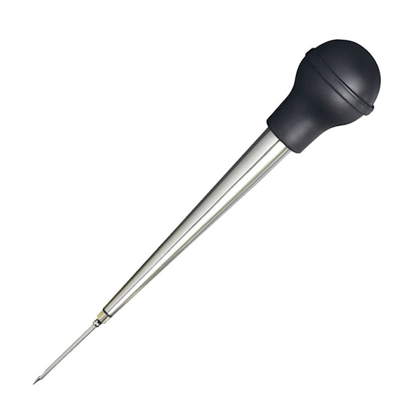 En pipett i rostfritt stål, med medföljande spruta, så att man med samma verktyg både kan ösa sås under stekningen samt injicera marinad i kött och fågel.