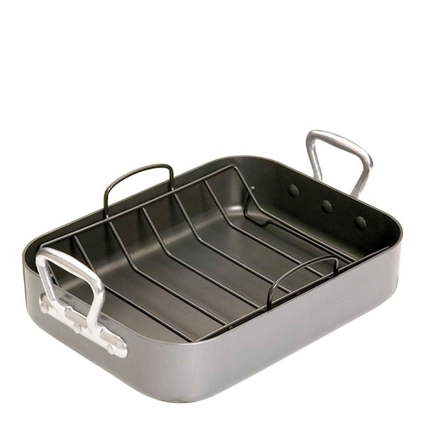 Master Class / Kitchen Craft ugnsform med galler 36 x 27 cm är en slitstark form i kolstål som passar perfekt för saftiga stekar, hel kyckling eller ugnsrostade grönsaker. Gallret säkerställer att värmen cirkulerar jämnt och låter köttsaften samlas i botten – för ett smakrikt och krispigt resultat.