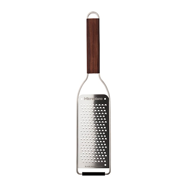 Microplane Master Rivjärn Grov kombinerar professionell prestanda med tidlös design. Handtaget i amerikansk valnöt ger ett bekvämt och stabilt grepp, medan den rakbladsvassa rivytan i 18/8 rostfritt stål gör jobbet snabbt och precist.