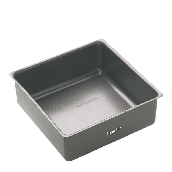 MasterClass Non-stick bakform 20x20 cm tar din bakning till nya höjder. Denna fyrkantiga form, med en kapacitet på 2 liter och ett djup på 7,5 cm, ger jämna, välgräddade bakverk varje gång. Tillverkad i hållbart 1 mm tjockt kolstål och utrustad med tätt rullade kanter, står den emot rost och deformation. Den dubbla Quantum II non-stick-beläggningen gör formen lättanvänd och den är enkel att rengöra då den tål diskmaskin. Tillsammans med den löstagbara popup-botten blir varje kaka lätt att lyfta ur formen, utan att behöva oroa sig för fastbrända rester. Formen är tillverkad utan PFOA, PTFE och BPA och är en säker och långvarig investering för alla sorters bakverk – från höga festtårtor till traditionella fruktkakor.