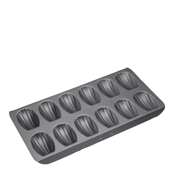Non-stick bakform för 12 st madeleinekakor från MasterClass. Denna robusta bakform i kolstål mäter 40 x 20 cm och har plats för 12 individuellt designade formar, var och en på 7,5 x 5,5 x 1 cm, vilket ger jämnt brynta madeleinekakor med en vackert detaljerad yta. Quantum II non-stick-beläggningen ser till att kakorna släpper enkelt utan rester, vilket gör rengöringen snabb och enkel.