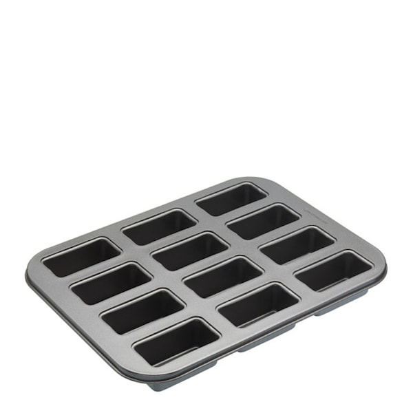 Varje miniform, med måtten 8 x 4 cm och ett djup på 3 cm, gör det enkelt att få jämna och stiliga resultat. Tack vare bakformens totala mått på 35,5x27 cm finns gott om utrymme för att skapa kreativa minibröd. De 12 separata hålen har löstagbara bottnar, vilket underlättar frigöringen av varje bakverk. Formens robusta konstruktion i 1 mm tjockt kolstål står emot flitig användning och tål temperaturer upp till 220 °C. Med MasterClass garanti på 20 år och non-stick-beläggningens 5-åriga garanti är detta ett långsiktigt val för den passionerade bagaren som vill leverera minibröd av högsta kvalitet.