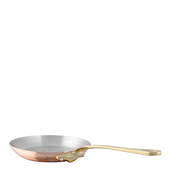 Stekpannans messinghandtag är traditionella och robusta, vilket ger ett mycket bekvämt grepp och en bra balans. Kastruller av koppar kan användas på alla värmekällor utom induktion. För induktionshällar kan Mauviels induktionsplatta användas som tillval.