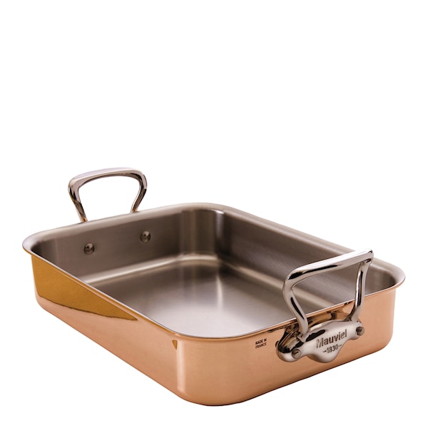 Den mångsidiga långpannan på 35x25x7 cm passar alla spishällar - gas, elektrisk, halogen och är även ugnssäker. Dessutom är den kompatibel med induktionshällar när den används tillsammans med Mauviels induktionsplatta (säljs separat).